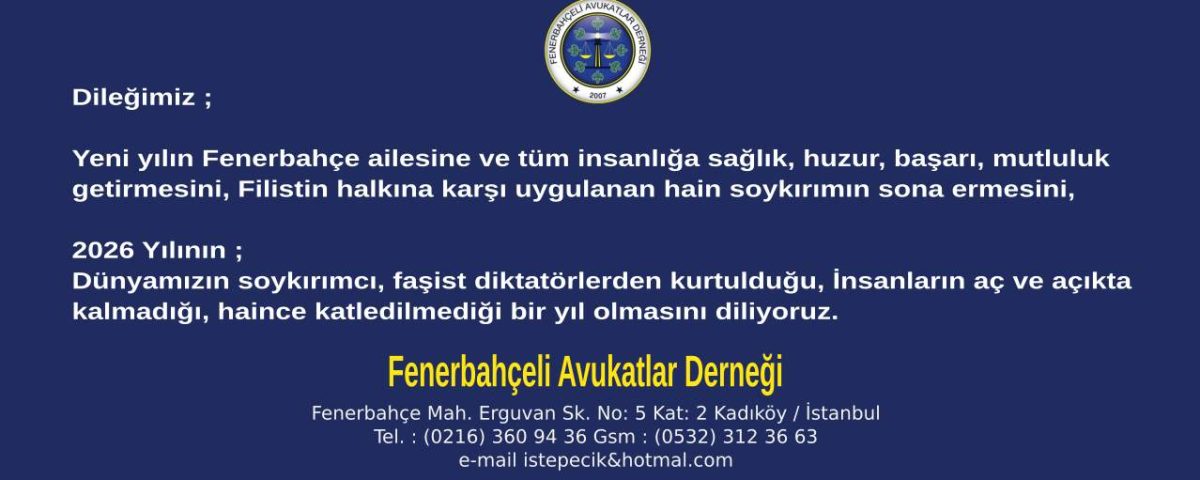 Yeni yılın Fenerbahçe ailesine ve tüm insanlığa sağlık, huzur, başarı, mutluluk getirmesini, Filistin halkına karşı uygulanan hain soykırımın sona ermesini,